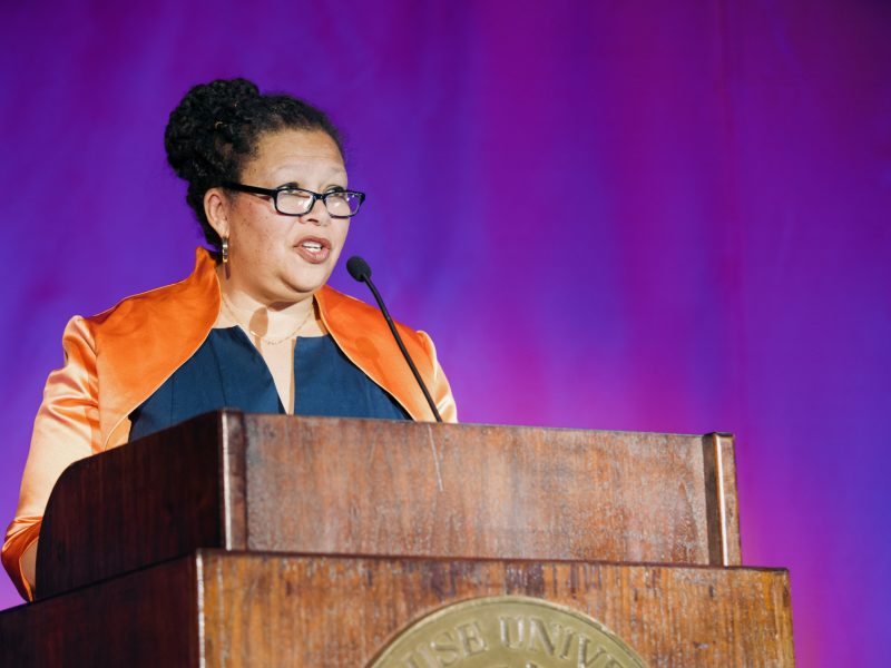 Sarah Willie-LeBreton, president of Smith College, was welcomed back to Syracuse by a stadium filled with nearly 1,200 people for the 40th Annual Rev. Dr.